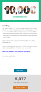 But at the bottom of the email, the footer said that the organization had rescued 9,977 children. They had rounded up to get the 10,000.