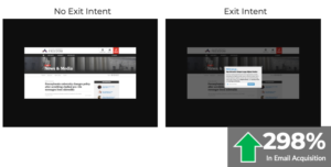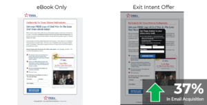 After running the experiment, they saw a 37% increase in emails acquired. Interestingly enough, the exit-intent drove a significant increase in conversion from the original offer – meaning that the exit-intent captured their attention and actually drove them back to reconsider getting the eBook.