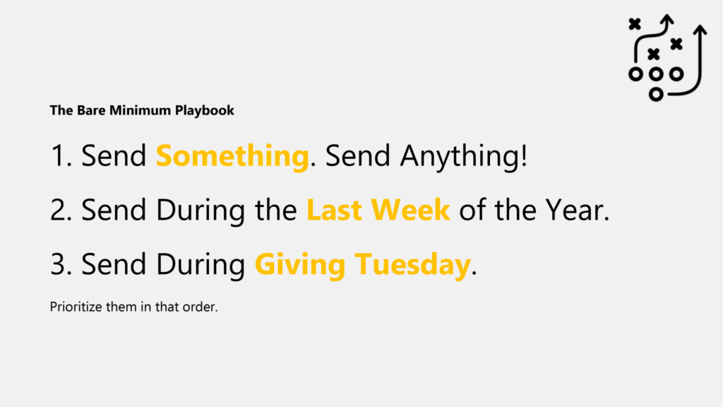 The bare minimum Year-End Fundraising Playbook for you, plan to send something:
