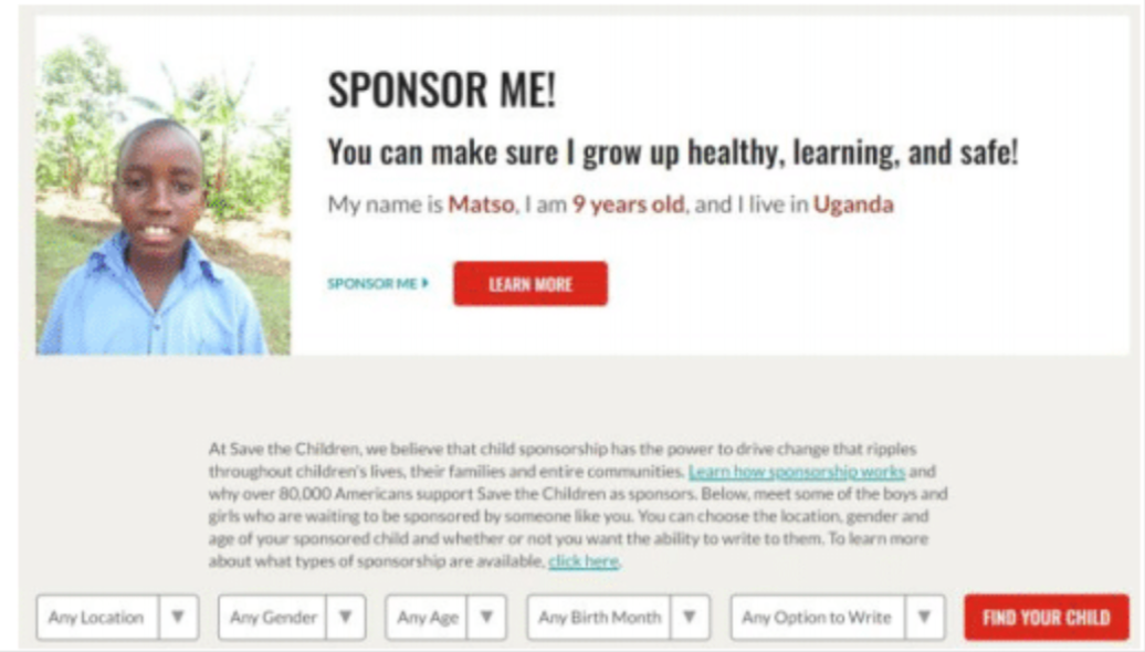 How humanizing an appeal by presenting a specific child’s name, age, location and image for sponsorship affects conversion rates