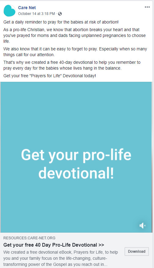 After our test on the Defending Your Pro-Life Beliefs course page where we found that conversational language directed at helping visitors outperformed more militant “Learn to defend your pro-life beliefs” language, we wanted to try a similar approach to our successful 40-Day devotional Prayers for Life. Our control version focused on the need to be more like Jesus and prayerfully interceding for the unborn at risk of abortion. The control copy focused on how we “can’t afford” to stop praying and used heavier language to make visitors feel obligated to pray, and hopefully, download the devotional.