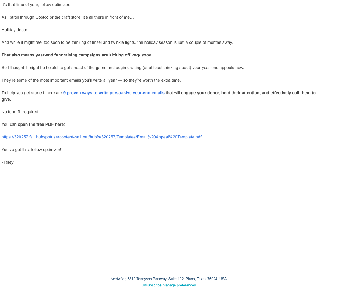 Since this is a cultivation email, the concept is to see if giving away the value in the email gets more people to consume our content vs. making them take an additional step to click through to the resource. The resource that we did link in both emails was not gated — it was a PDF.
