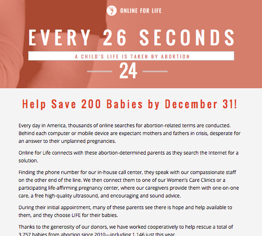 As part of their year-end campaign, Online for Life wanted to find a way to boost the conversion rate on their donation page.