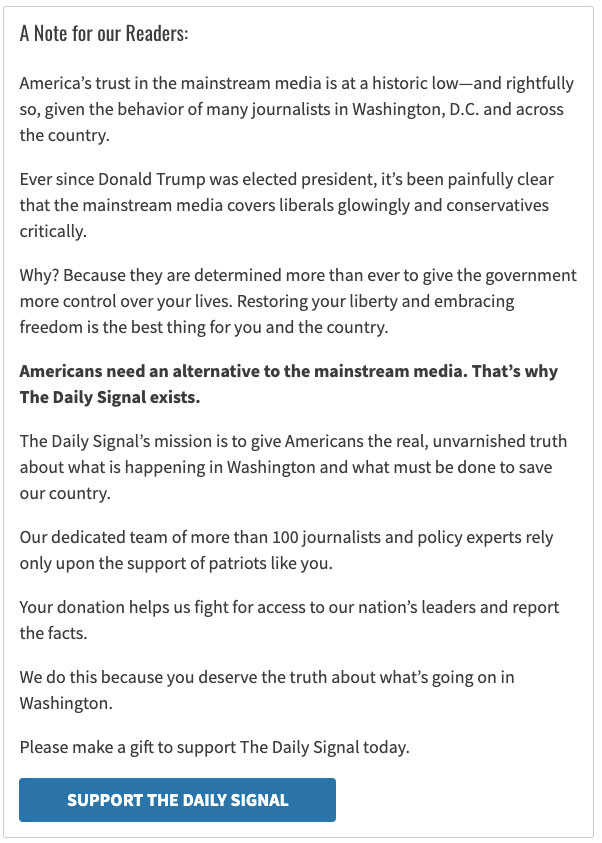 How a membership ask to new visitors to The Daily Signal increased donor conversion rate