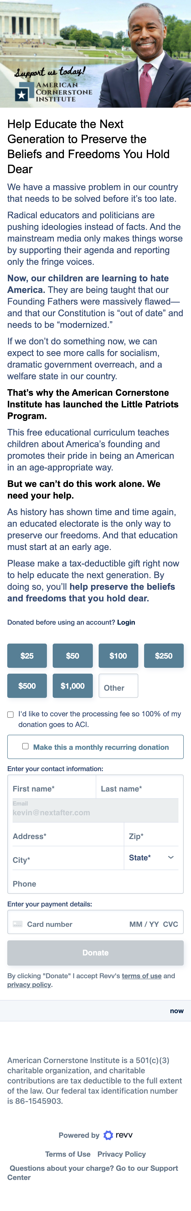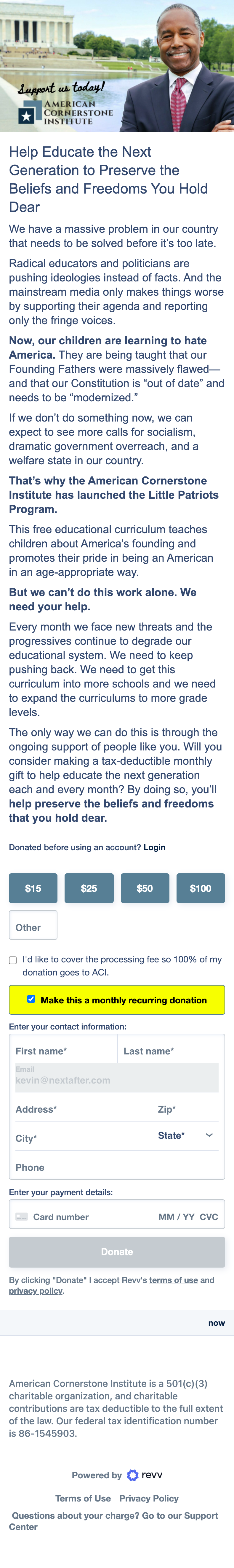 For a text-based donor acquisition campaign, American Cornerstone Institute wanted to discover whether this audience could prove to be a potential source for recurring donor acquisition. We decided to set up a treatment version of the page that ended the donation page copy with additional information on the monthly ongoing work required to fulfill the mission, a pre-checked recurring gift selection, and a lower gift array which would better align with average recurring gifts.