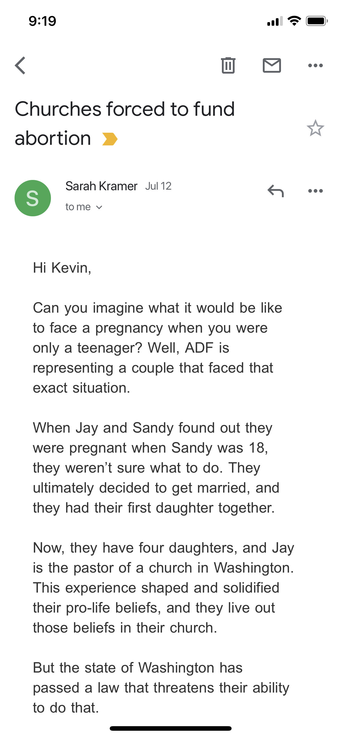 Alliance Defending Freedom was continuing the longitudinal experiment to increase cultivation to a targeted segment of their email house file. The goal of these emails was to simply engage the audience and provide them with ongoing content and stewardship. With that in mind, we wanted to find ways to increase that engagement.