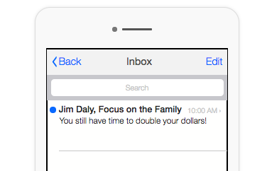 The emails for Focus on the Family’s year-end giving campaign are image heavy with a video on them to push people to the donation page. We hypothesized that a personal email, with a more conversational tone from the subject line to the body copy would increase conversion. The first goal was to get more people to open the emails in an effort to get more people to click and convert. We A/B split the email file and tested it.