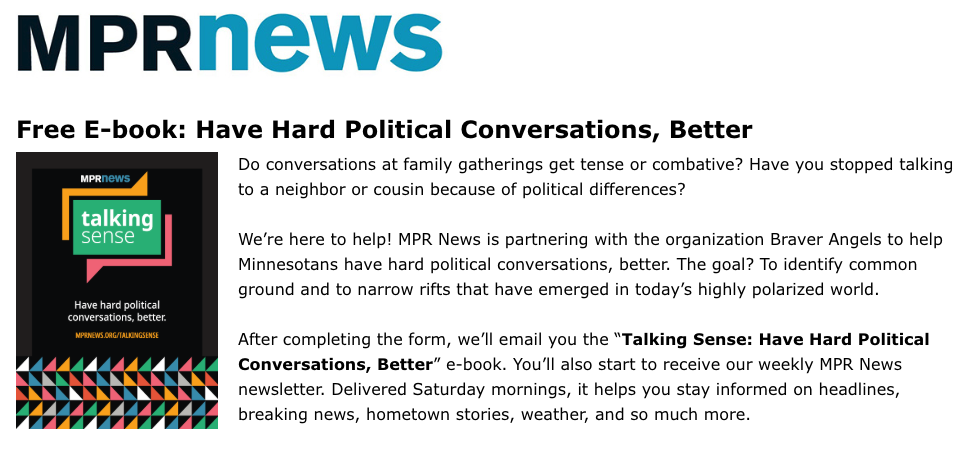 Treatment: Get instant access to this free e-book “Talking Sense” today to have better political conversations