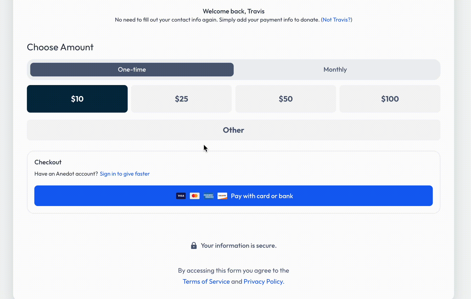 Possible explanations for the negative results could be that most donors are accustomed to the standard one-step donation process and this multi-step process led to increased anxiety and possibly confusion. There is also the possibility that the three-step process invited more friction instead of less, as we hypothesized. Instead of having all the necessary information directly in front of them, donors encountered an uncertain number of steps and also more opportunities to flee the donation opportunity. Perhaps adding clarity to the three-step process would improve the donor experience and save conversions. This could be communicated by noting that this is step 1 of 2 or 2 of 3 as they go through the process.