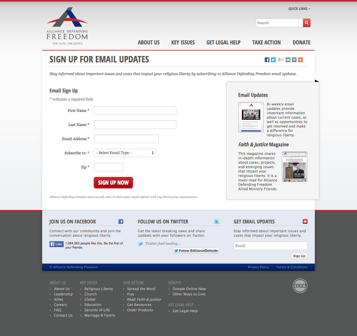 In order to boost the organization’s digital reach and impact, Alliance Defending Freedom (ADF) is looking to grow their email list size. One way to do that is to increase the number of emails acquired organically on their website. To accomplish this goal, we decided to create a new treatment of their existing email acquisition page.