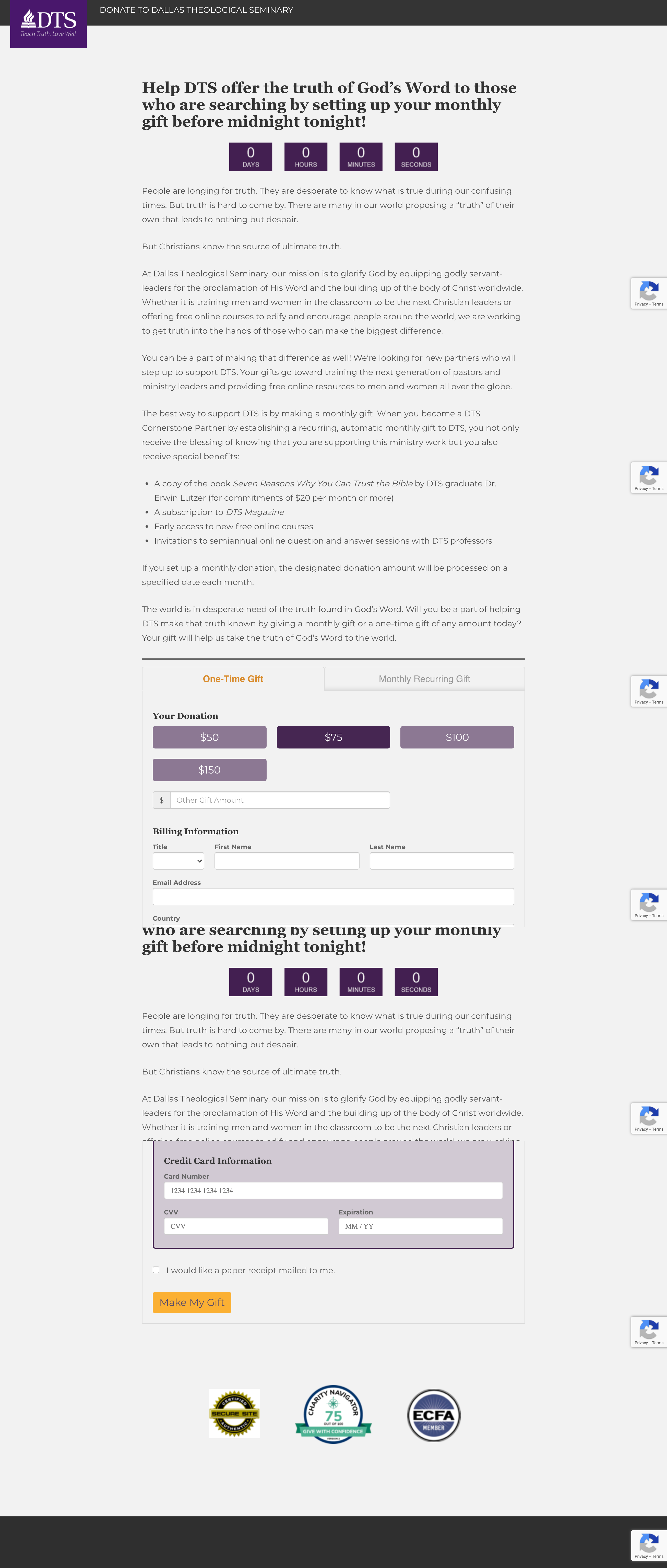 Because the campaign had a very limited window to run, we did not receive enough sessions or transactions to validate the experiment. We will want to test this again with a longer runway to capture a proper amount of traffic in order to more thoroughly analyze how this impacts recurring giving in the future.