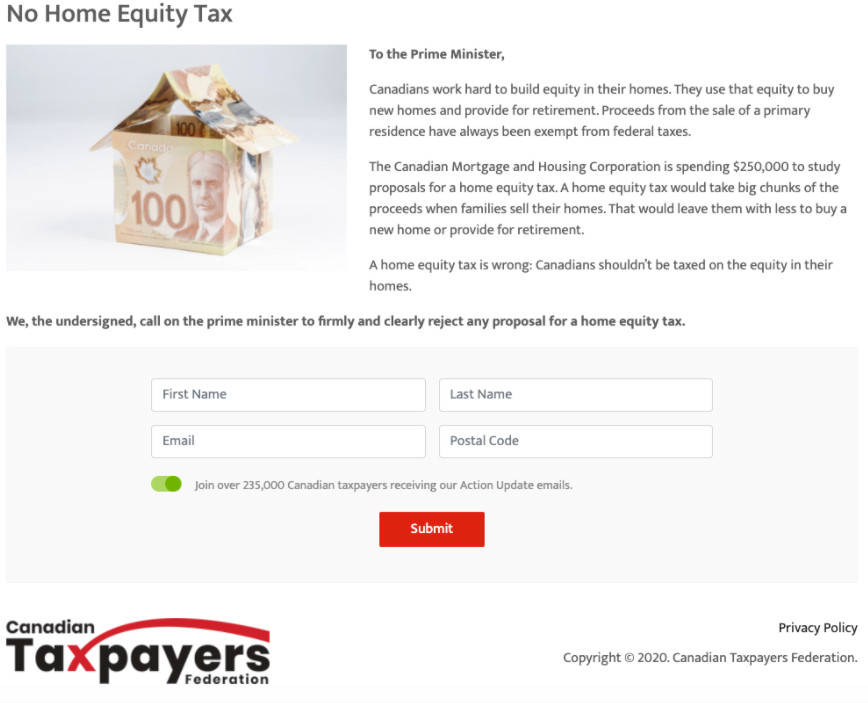 Our overall team did acknowledge that perhaps showing personal details was a "turn off" for some, as much as it might have pushed more to sign, as privacy is really important to some folks in the Canadian Taxpayer's audience.
