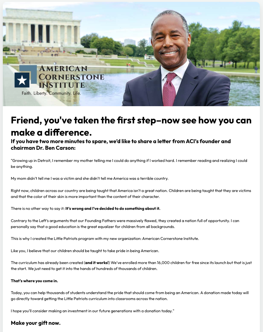 That’s why we developed a treatment variant (treatment #1) with the following headline: “Your name has been added. Before you go, would you consider this special request from Dr. Ben Carson?”