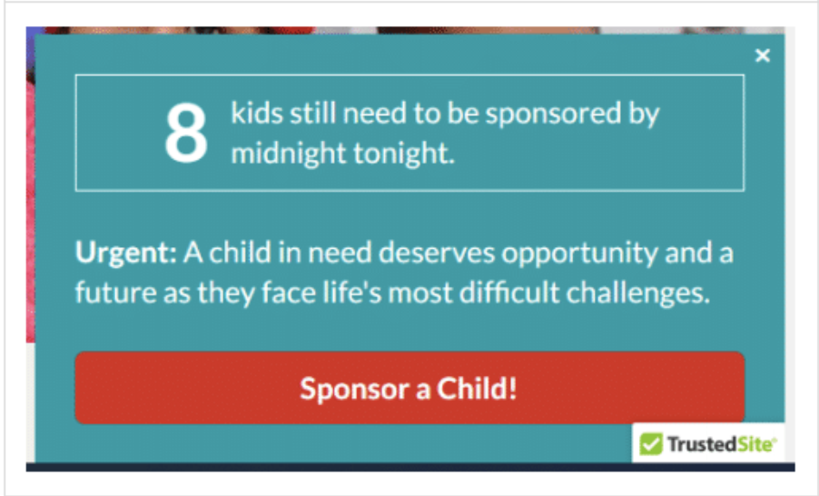 We decided to test a slide out variant on the child list page on all devices to determine if adding a countdown clock to our original # of kids still needing to be sponsored would increase the conversion rates with our audience.