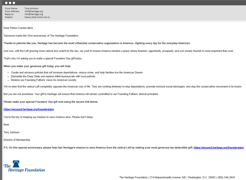 We have tested this before with previous campaigns. However, with this one we wanted to see what was more appealing to their donor audience, a total campaign goal countdown or a daily goal countdown.