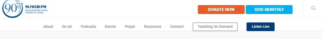 KCBI is a large Christian radio station in the DFW area with a worldwide listening audience. They wanted to see if they could improve donor conversion on their website by adding a monthly donation button to their main navigation next to their one-time donate button. Monthly donors are an important part of their program and they hoped that this additional callout would increase monthly donor conversion.
