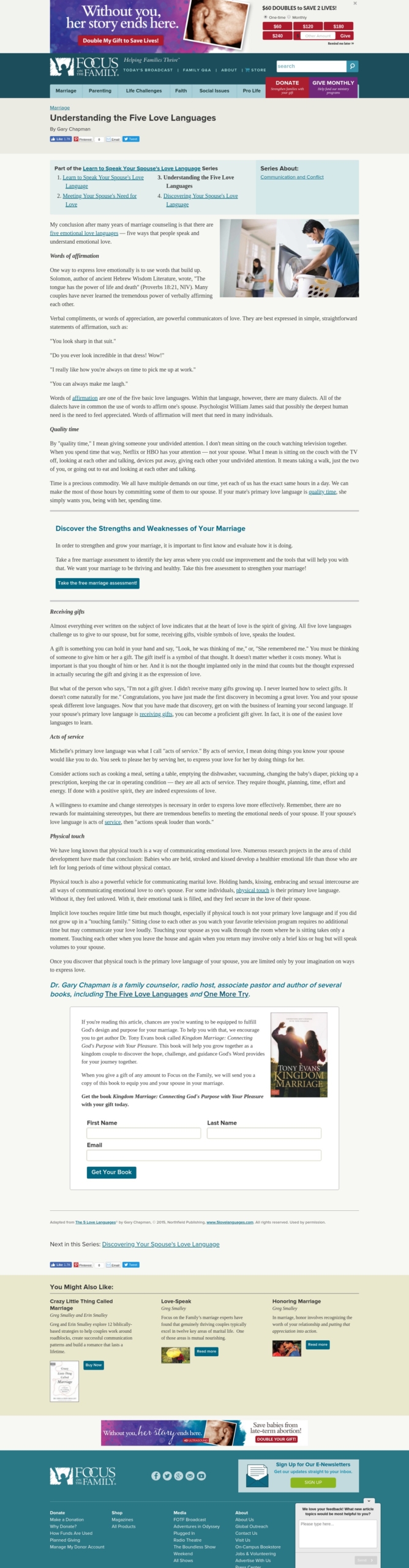 Focus on the Family gets significant traffic to their marriage articles. Through a series of testing, we have found that putting a free Marriage Assessment offer at the end of article pages can increase name acquisition. To build upon these learnings, we hypothesized that adding a small teaser about the marriage assessment in the middle of the article might help increase conversion for the marriage assessment. To test this, we set up three variables for the experiment. One tested adding a teaser and linking people directly to the marriage assessment and the other treatment tested adding a teaser that jump down to the bottom of the article where the marriage assessment feature was and took them to the assessment.