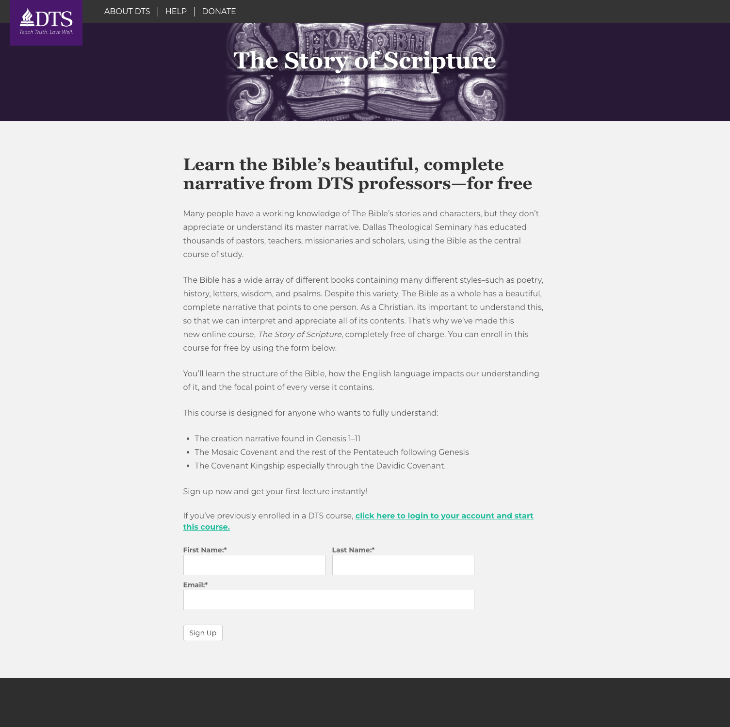 In a previous experiment, we had seen that adding a personal quote from the professor on the course registration page increased sign-ups. We wanted to test this same hypothesis on additional courses to see if this is something that was specific to the previous course or specific quote or if this was a global concept that could be rolled out on all courses taught by the seminary’s president. For this course, we added a brief testimonial and a photo of the professor so potential course registrants can get a glimpse of additional clarity about who is teaching the course and how having social proof from a figure of authority would motivate visitors to give away their email address on the page. We split the traffic 50/50 to each version.