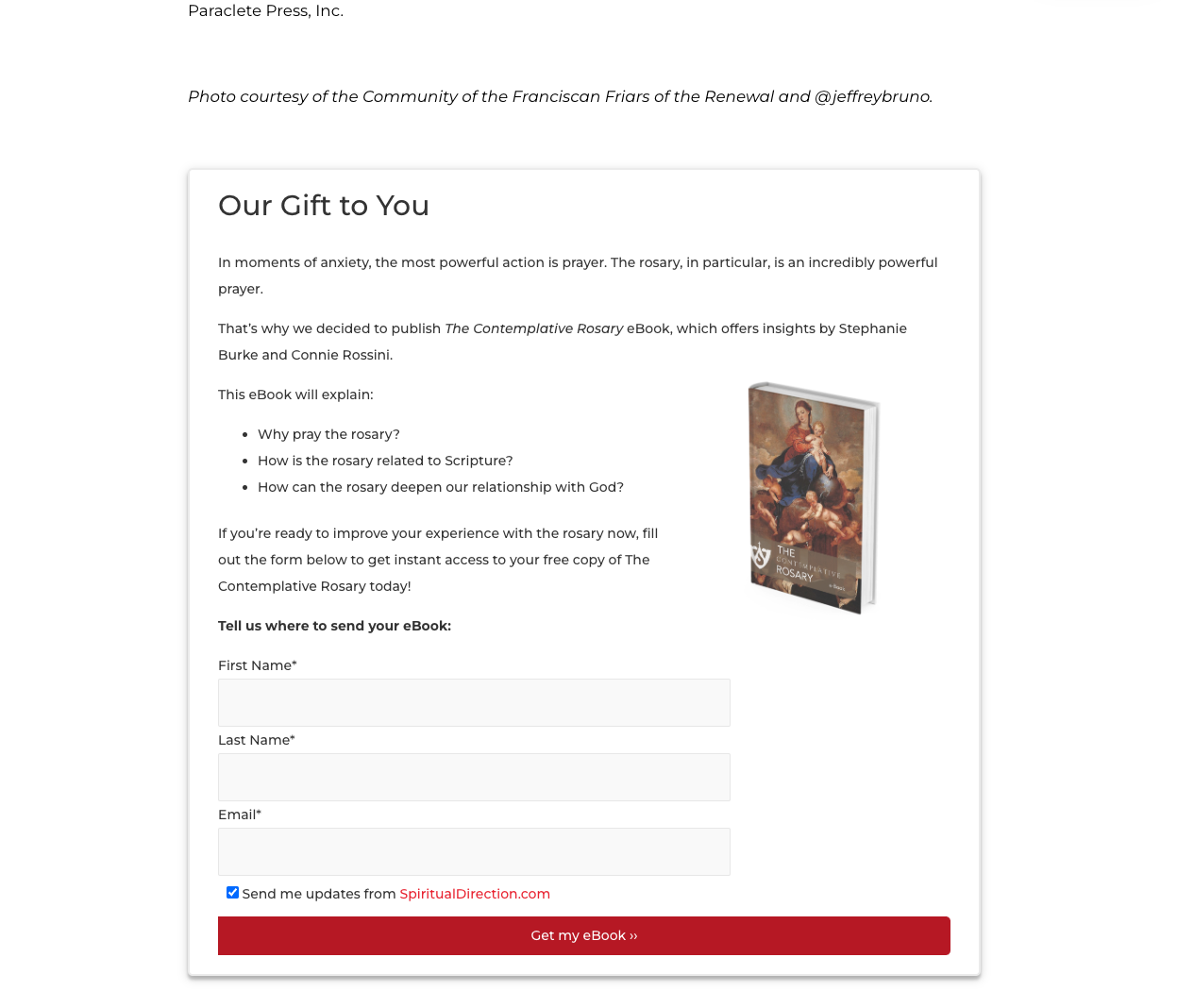 Avila has typically had a generic email subscription at the bottom of all their pages, including their blogs. We wanted to test and see if adding a an offer and dear reader at the end of the blogs would both generate more donations and increase email acquisition rate. Avila used an offer that was running in their Facebook ads for this experiment.