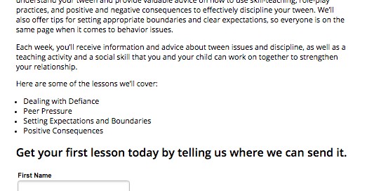 Boys Town offers a free email series about how to discipline tweens. This email series has been an offer they have used for a while and have very positive feedback from people who have received the series. In an effort to increase conversion, they hypothesized that adding some of the testimonials they have received from people to the body of the acquisition page might give it more credibility and provide evidentials to why a person should get the offer.