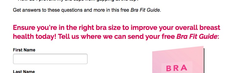 National Breast Cancer Foundation was trying to increase conversion rate on their Bra Fit Guide offer, and wanted to test if reiterating the value of the offer in the call to action increased conversion rate. The rest of the page remained the same.