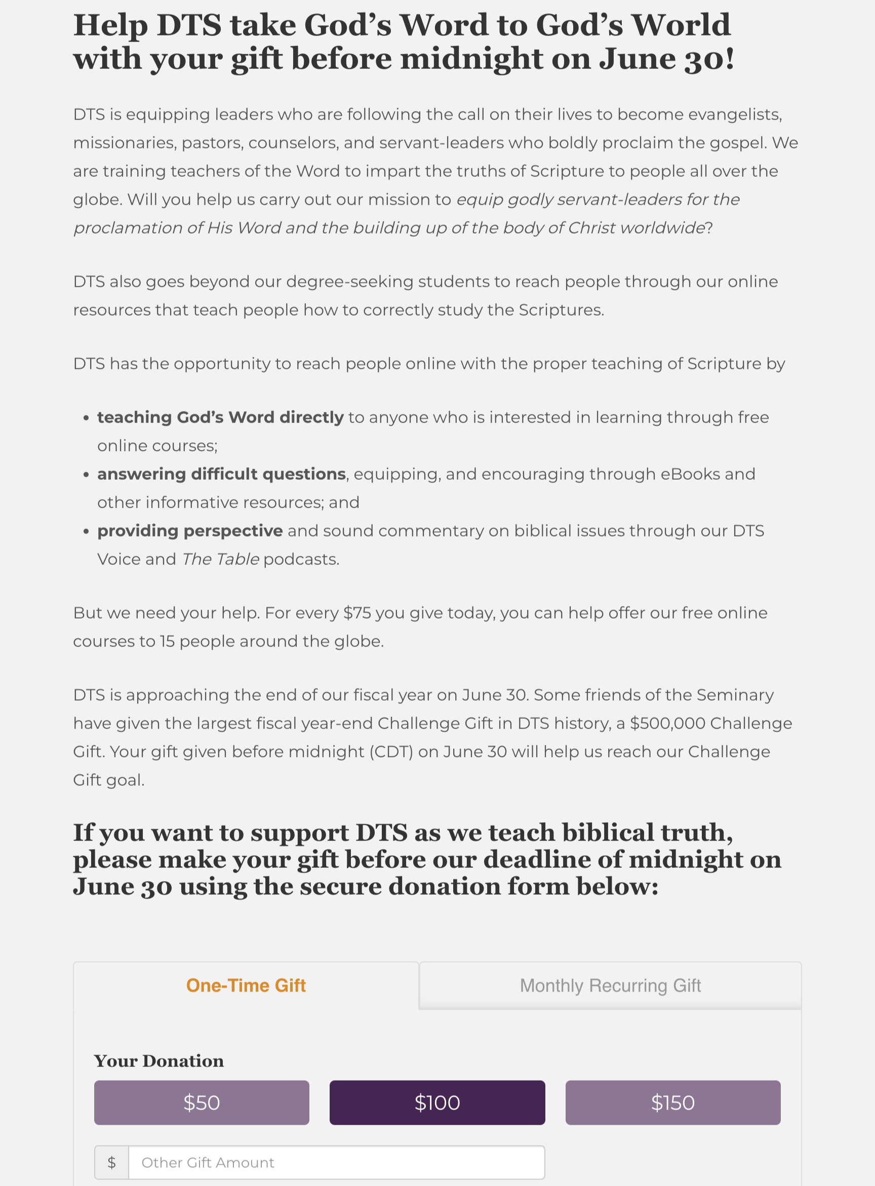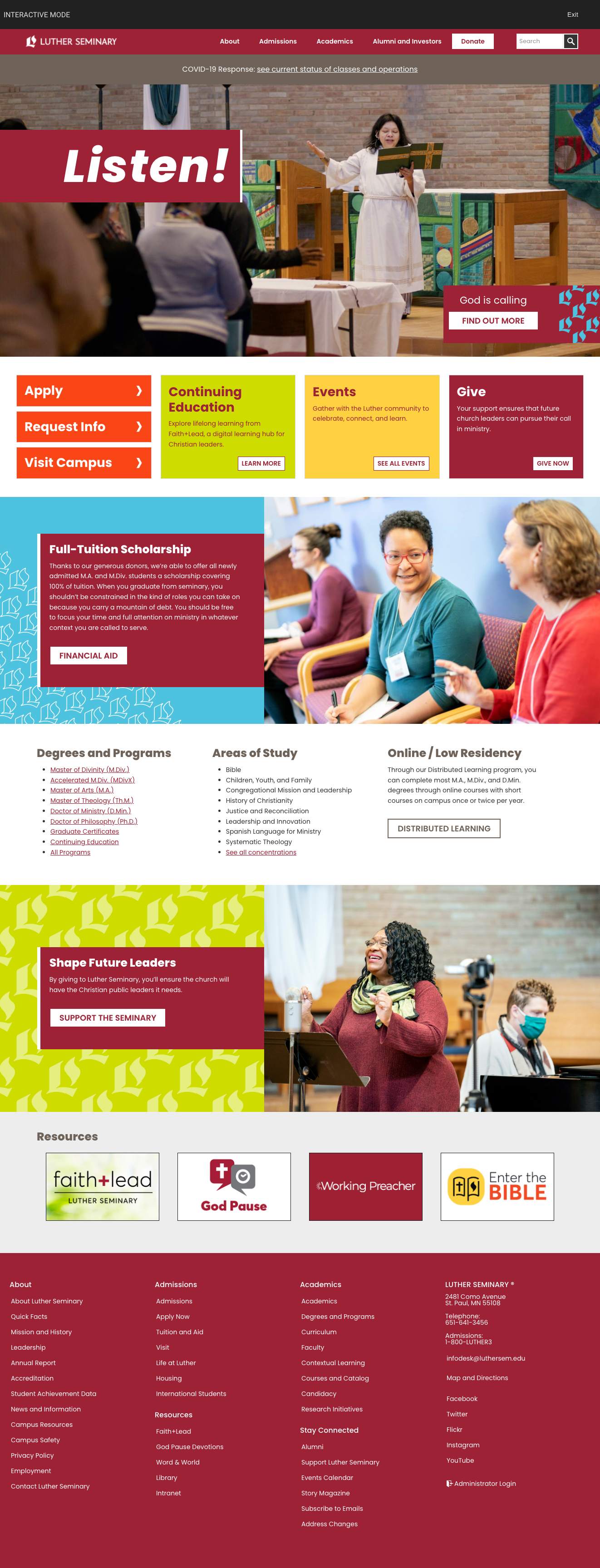 Although Luther Seminary has a large, bright donation callout on their homepage, we observed that it was not driving the expected level of donations.