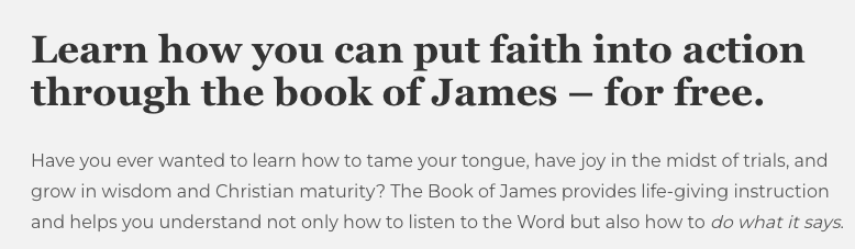 Looking at the current headline, we wonder if it effectively speaks to the user’s desire. Do they want to deepen their knowledge of a book of the bible or do they want to take the overall message of the course and apply it to their life in faith? Are they looking for knowledge or self-improvement?