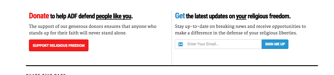 On the new Alliance Defending Freedom website, the primary pages within the navigation serve as a means for visitors to learn more about the various aspects of the organization. These pages offer multiple links throughout the page allows each visitor to “choose their own adventure” depending upon the information they want to learn more about.