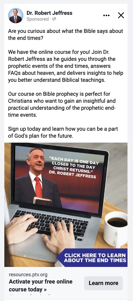 PTV recently released a new prophecy course on Facebook however sign-up conversions were not what we were hoping for. Therefore we decided to radically test the Facebook ad design and copy.