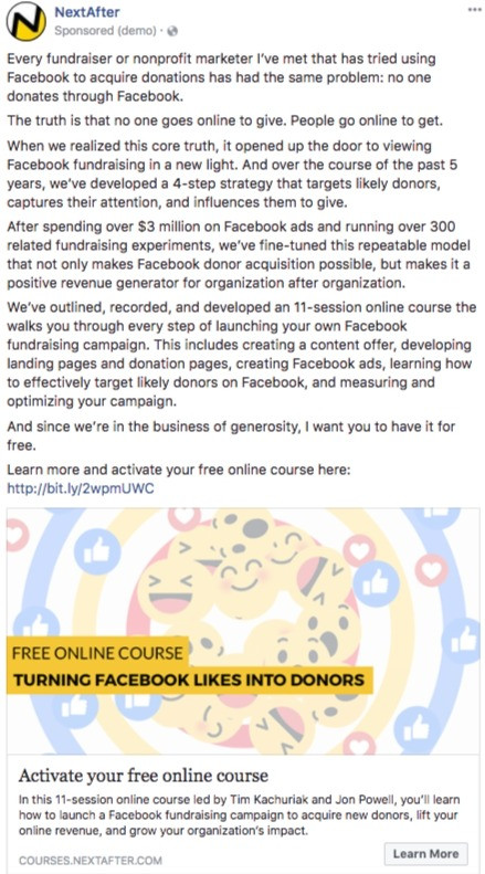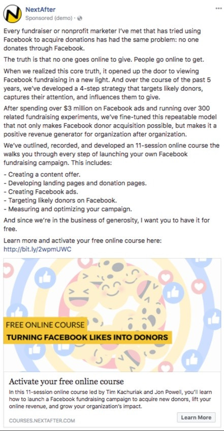 When launching acquisition ads for our new online course on Turning Facebook Likes Into Donors, we wondered if we there was a way to more clearly communicate all the various learnings that someone would get out of the course.