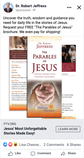 Pathway to Victory is a ministry who has built a fundraising program around the offer of premiums—books, pamphlets, brochures, etc. One of their most popular offers is a brochure focusing on the most popular Parables of Jesus.