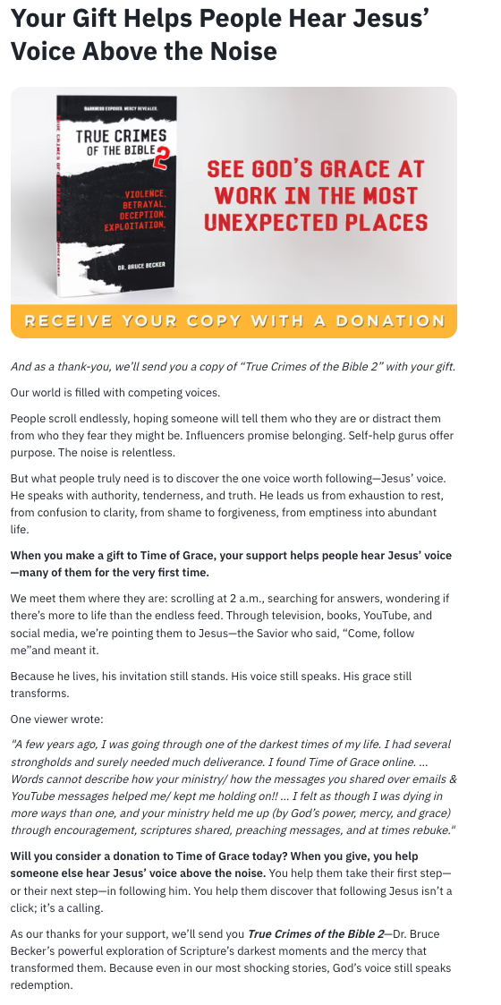 In the ads, they addressed that the user would be receiving Christmas cards and a calendar from The Navigators in the mailbox soon. The ads had no other call to action or button to click through to another page.