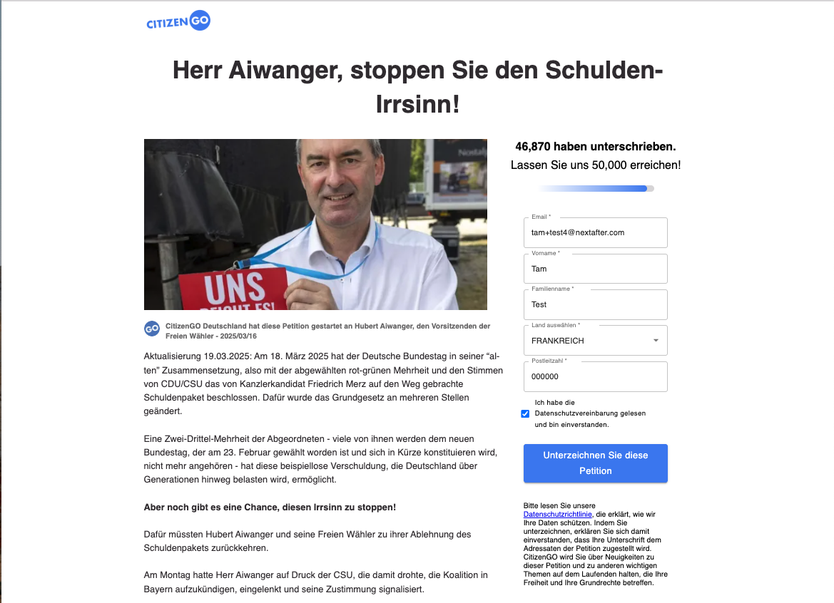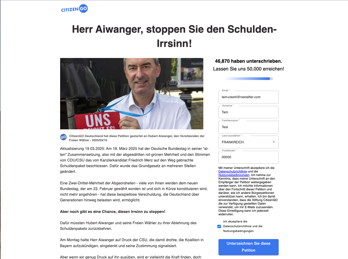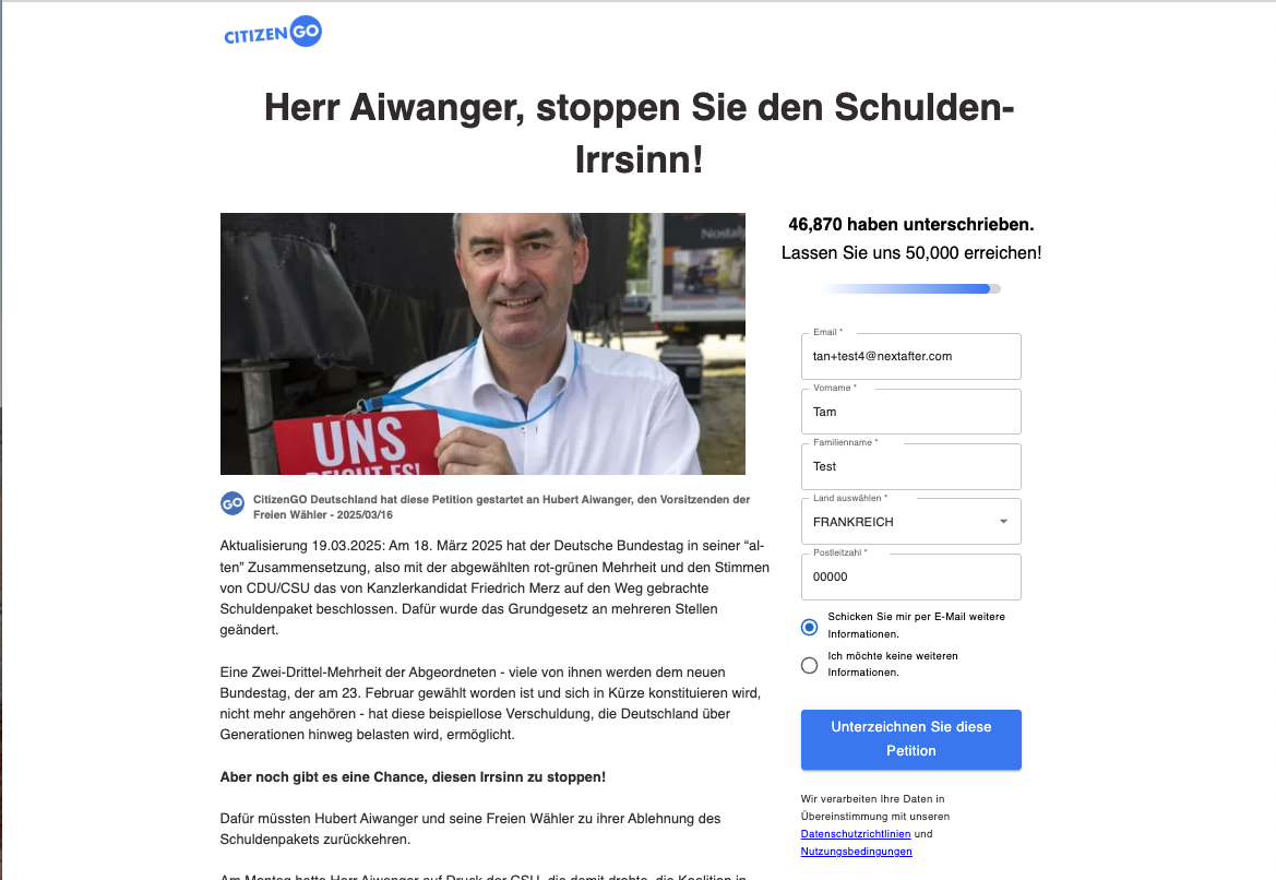 This experiment stems from a review of GDPR (General Data Protection Regulation) requirements, which mandate that organizations obtain explicit consent from users before collecting or processing their personal data, including email addresses. As part of this compliance, it’s important to design petition sign-up forms in a way that ensures users are properly informed and opt in to receive future communications.