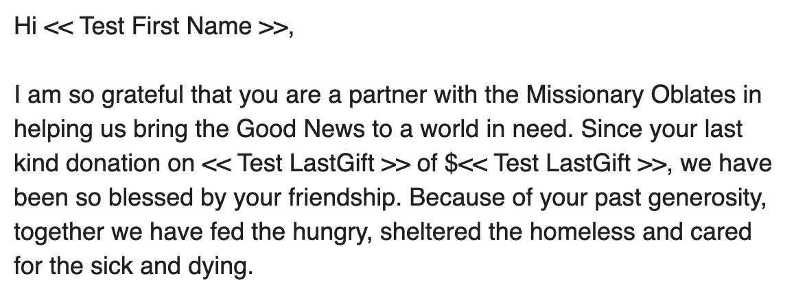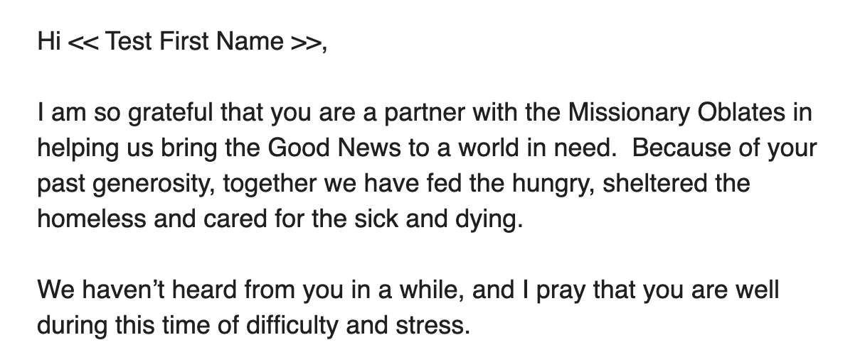 During their calendar year end campaign, we tested mentioning the lapsed donor’s last gift date. One version was the same copy as the other campaigns. The test version included the last gift date and last gift amount for each lapsed donor. The purpose was to remind them that it had been some time since they last gave. We only included donors who had not given in the last 5 years. This was tested over a series of three emails, one campaign email, one final day campaign email and then a forward of that email from the primary signer’s secretary.