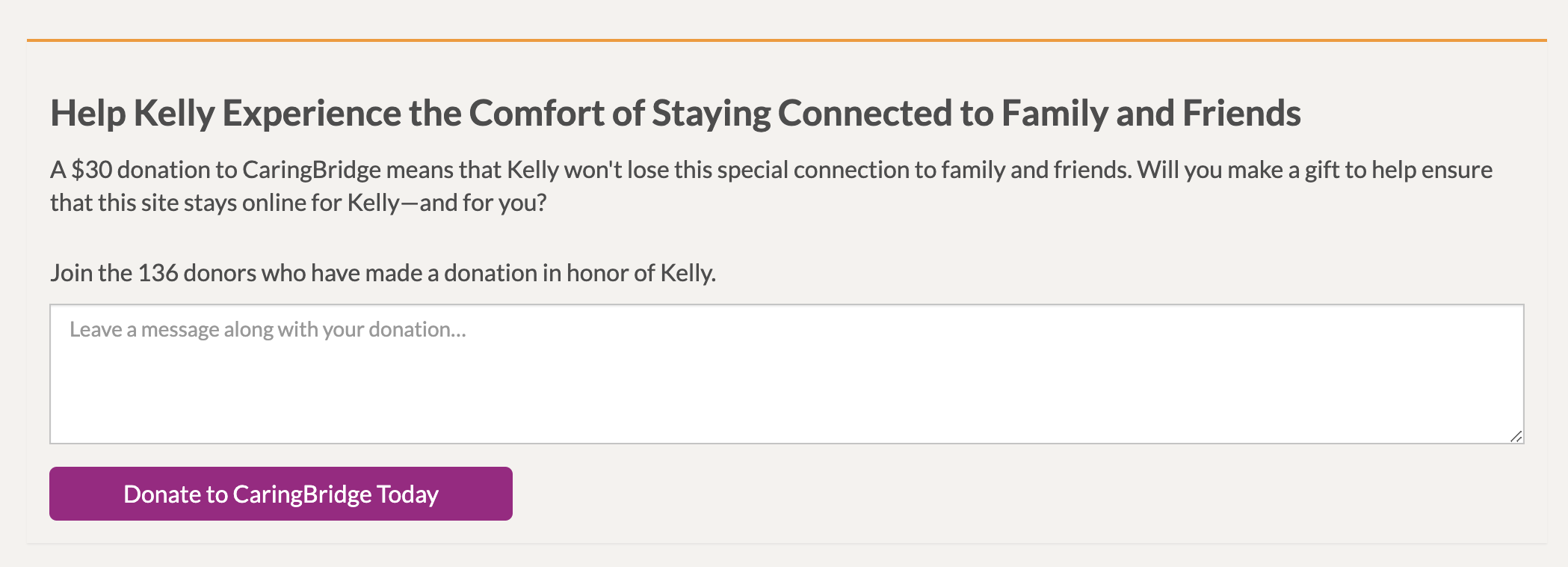 CaringBridge’s tribute widget was a primary source of donations for people who visited their journals. Over the years, they had optimized the copy to maximize conversion.