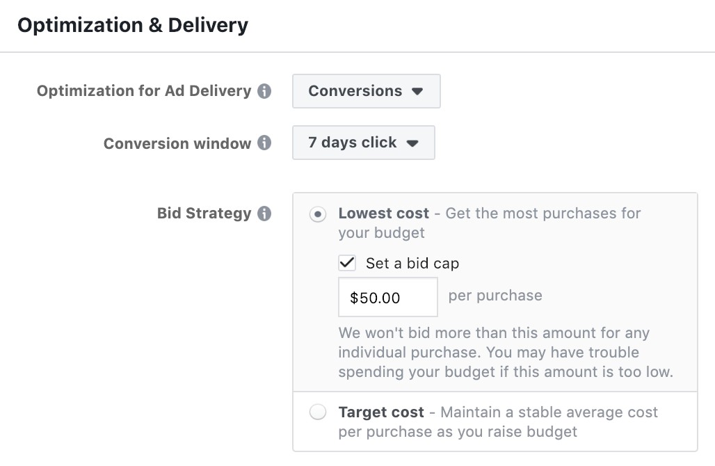 In an effort to control the costs, we decided to test out the setting a cap on our bid of $50. This would allow us to potentially limit our costs, assuming the strategy worked.