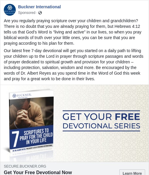 Buckner International had been running their “7 Scriptures” offer for over a year and a half. In that time, we had run many different experiments in an effort to reduce the costs of acquiring both emails and donors. While these optimization efforts had been successful at reducing the cost per email, we had not been able to significantly impact the donor acquisition efforts.
