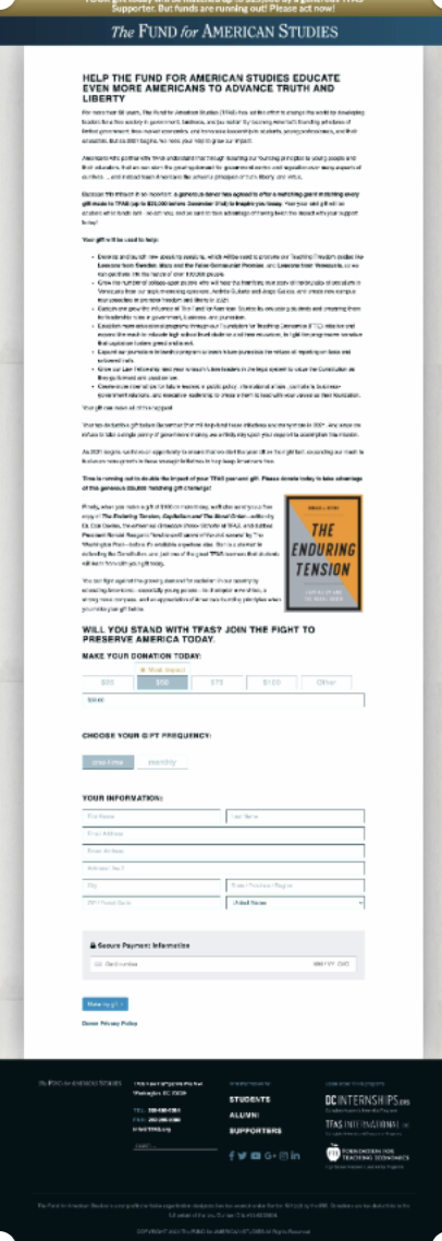 The Fund for American Studies (TFAS) was readying themselves to launch their year-end campaign—and did the logical thing first: To grab last year’s page and use that as a starting point for this year’s campaign (because last year was rather successful).
