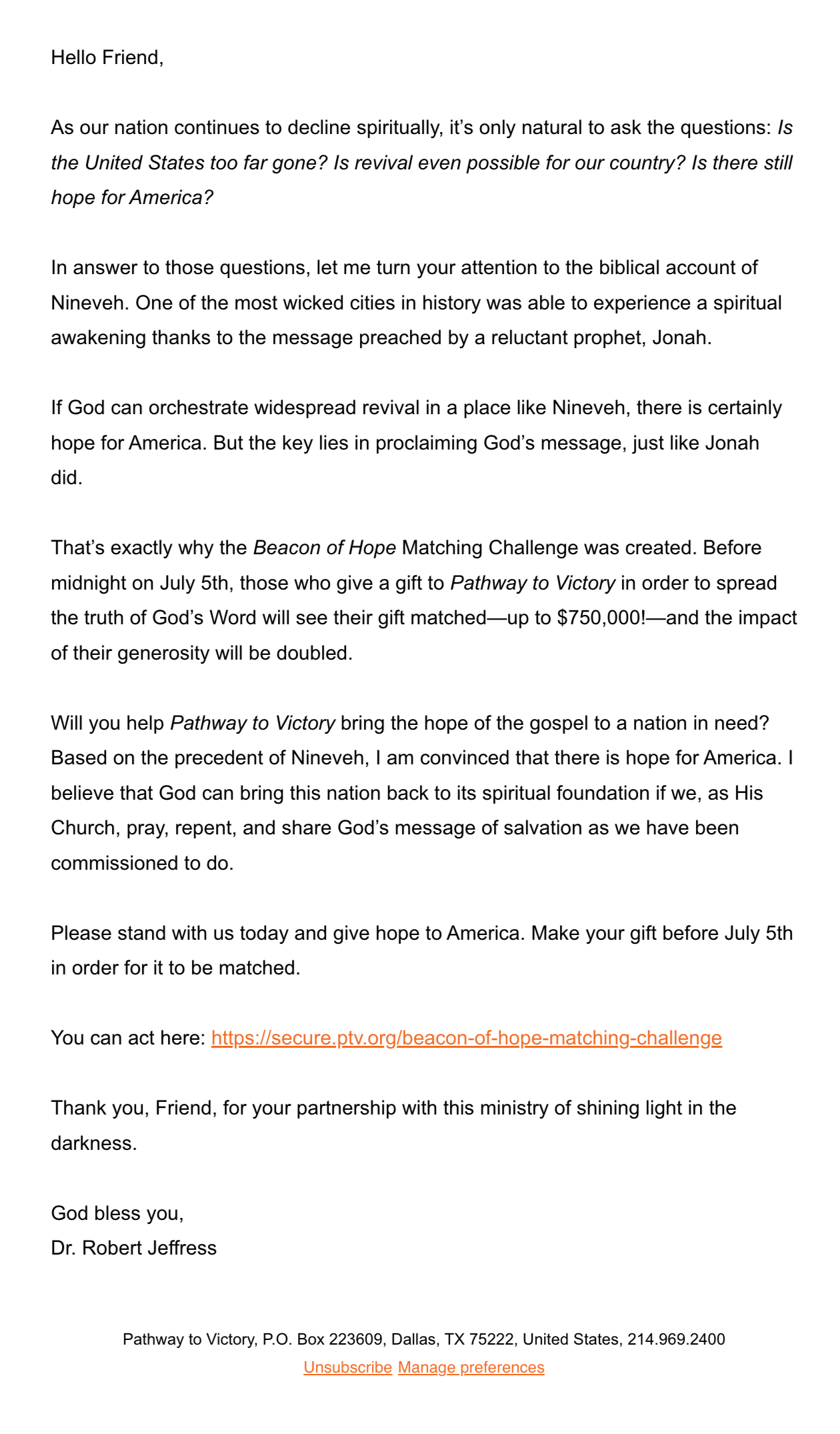 Pathway to Victory is the broadcast ministry of First Baptist Dallas.