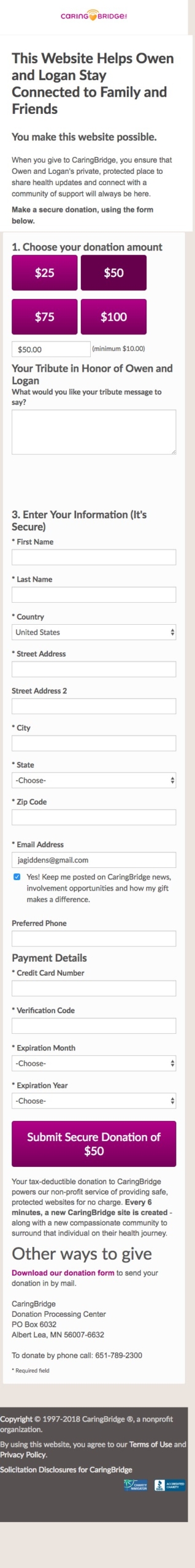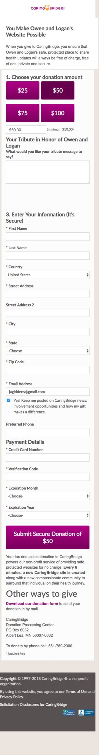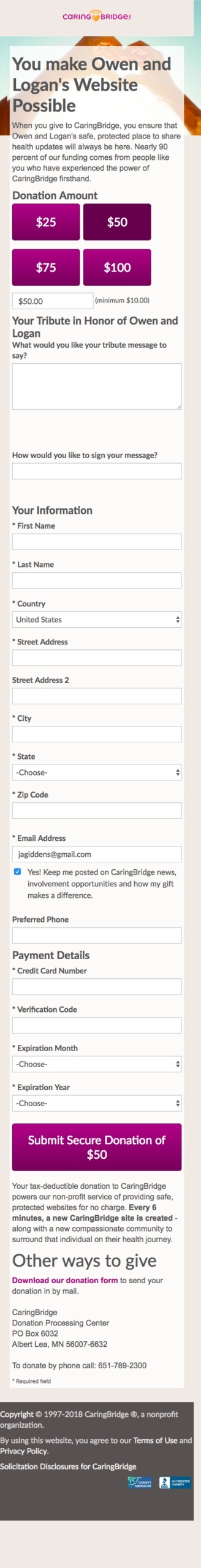 CaringBridge had a different site that was used for mobile donation traffic, built before the site was made responsive. Over time, these donation pages did not absorb optimizations made to the desktop versions, where the majority of conversions occurred.