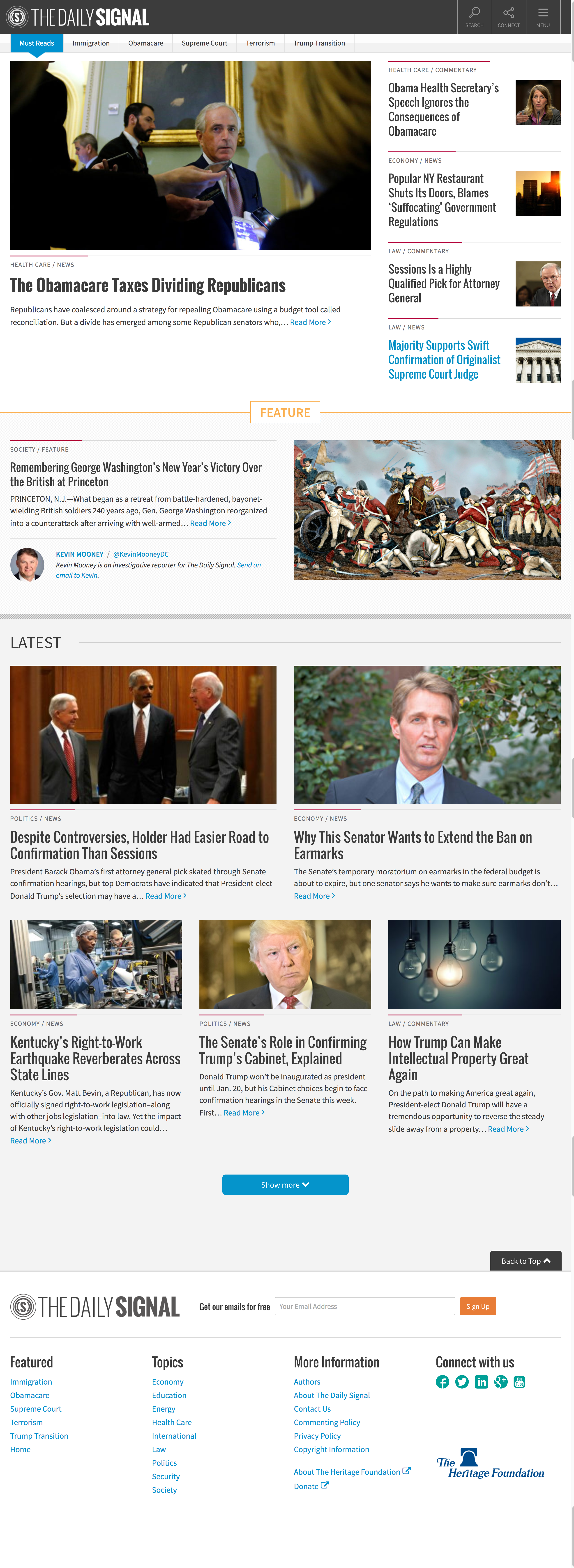 At the end of the month of December, The Daily Signal produced six different articles that highlighted the impact donors have on the organization and illustrated the need for additional contributions. The idea behind this tactic was to remind visitors of the need for donor support so that when they were solicited by email and direct mail later in the month, they would be more likely to give a gift.