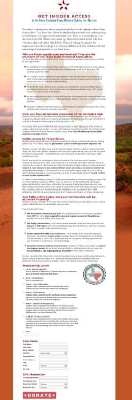 The Texas State Historical Association had several initiatives designed to grow their membership base. However, the membership page presented tremendous friction. The experience used a shopping cart, though it was asking for donations. It also presented four different membership options, but did not give distinction between them. And the copy on the page was not very specific, and made unclear and unsubstantiated claims.