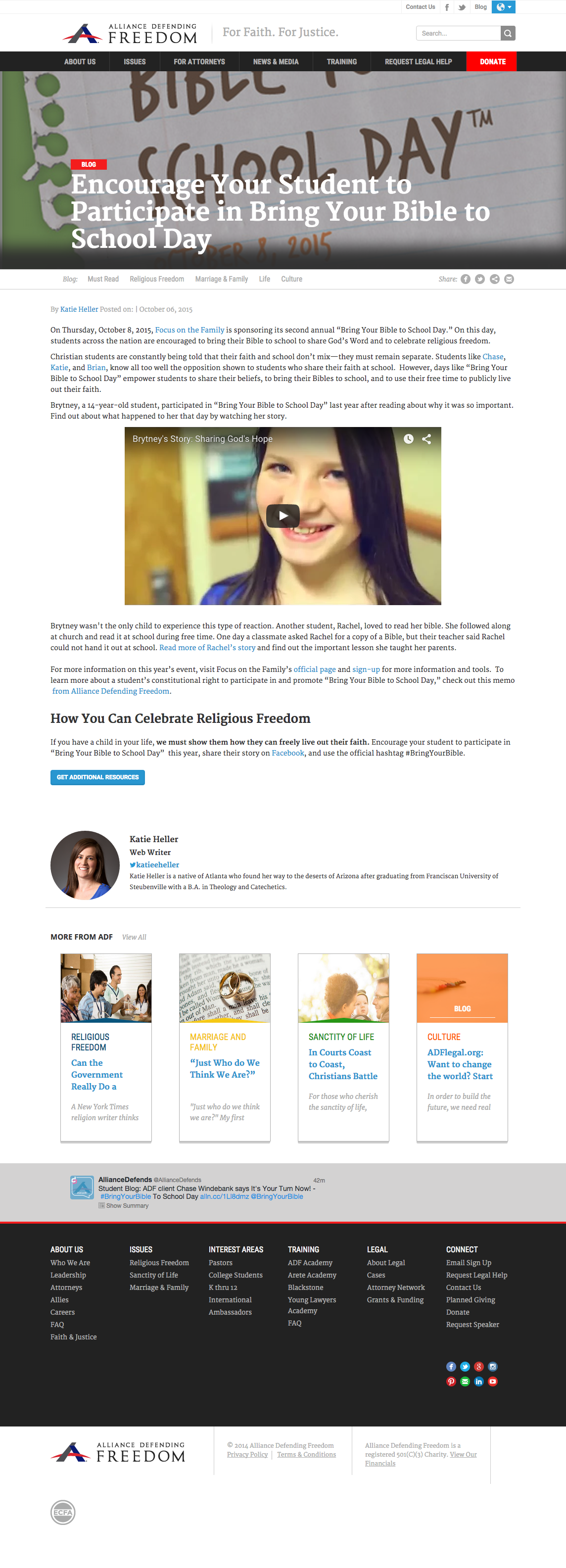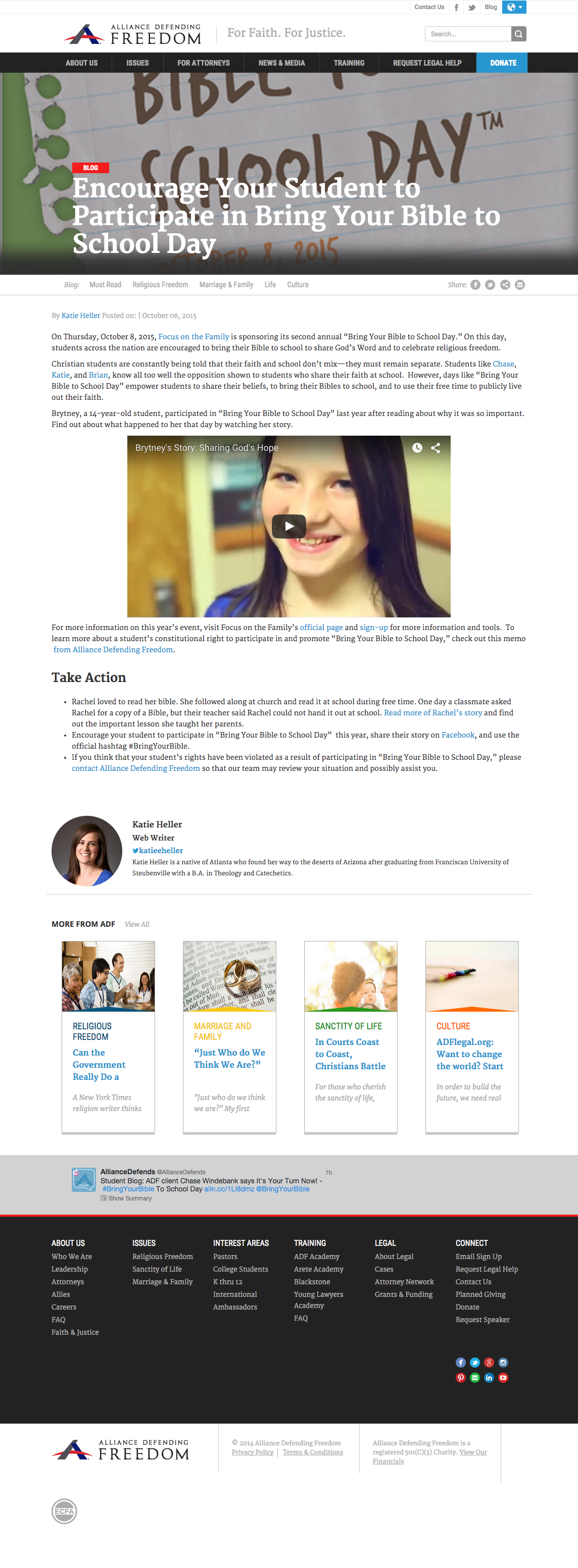 Alliance Defending Freedom creates a daily blog post that they use to promote discussion and knowledge of America’s religious freedoms. The majority of these posts end with a call-to-action or multiple calls-to-action that link to areas of their website or to various other organizations that promote the values ADF strives to protect. Since the goal of each post is to drive visitor engagement, we wanted to find a way to increase the number of visitors that participate in the call-to-action.