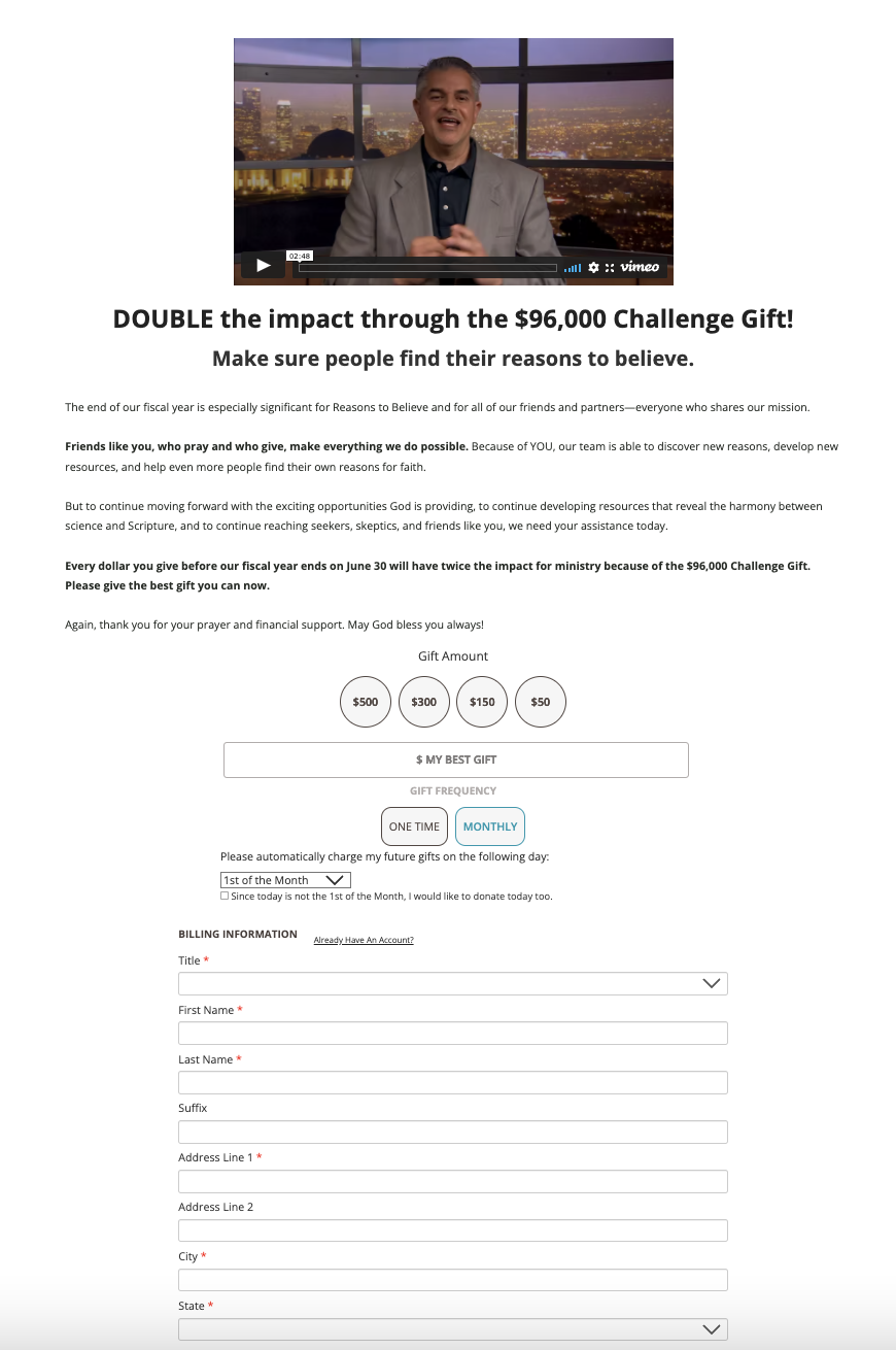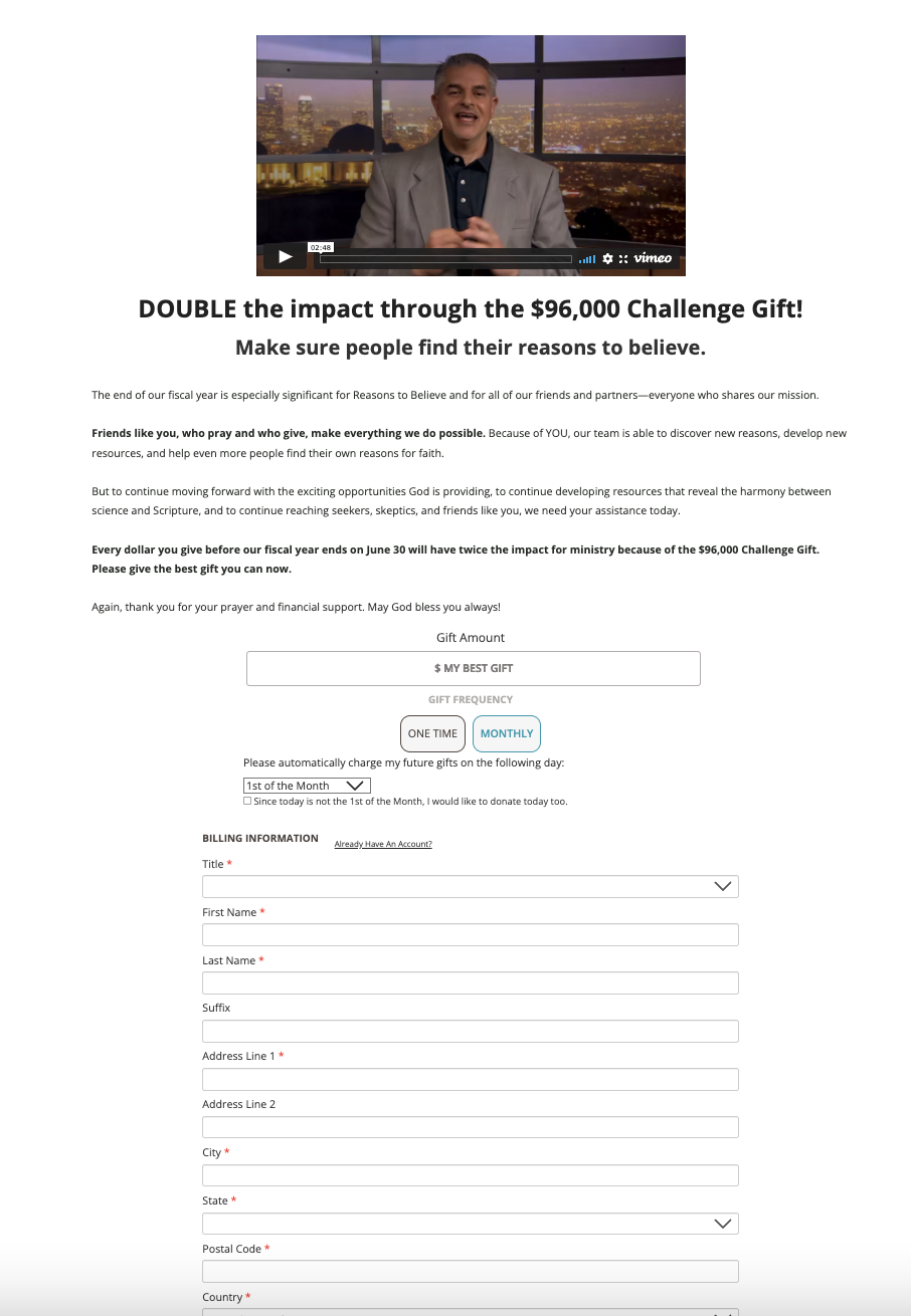 RTB had previously tested removing the gift array from a donation page during a high urgency campaign but the results were inconclusive. In order to try and garner valid results, they retested this concept again at another point of their high urgency campaign, on a different donation page. The hypothesis is that removing the gift array from the donation page may increase revenue and/or donor conversion rate as prospective donors feel like they have more autonomy in the giving process.