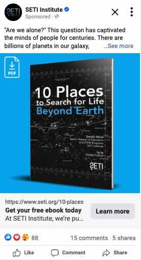 Moving forward, the learnings from this experiment suggest that utilizing scientific images may be more effective in capturing the attention and interest of the target audience for the SETI Institute. Future experimentation should focus on leveraging visually engaging scientific images to drive higher engagement and conversion rates. It is important to continue testing different visual creatives to identify the most effective approach for engaging the audience and achieving the organization's objectives.