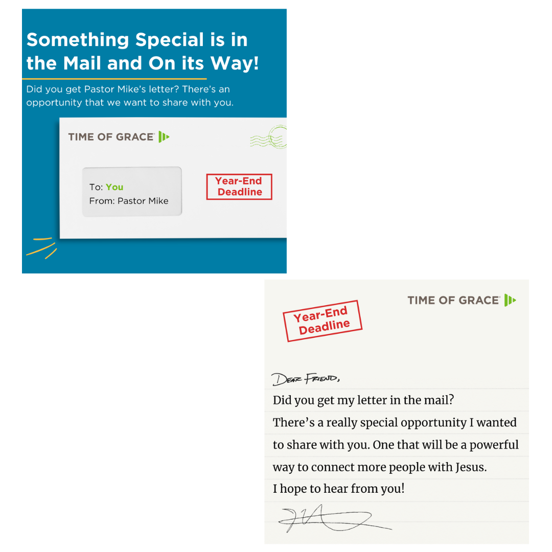 We believe that utilizing Facebook ads to retarget direct mail recipients will achieve an increase in donations because it helps reinforce that the mail piece is incoming – keeping the ask and year-end giving to Time of Grace top of mind.