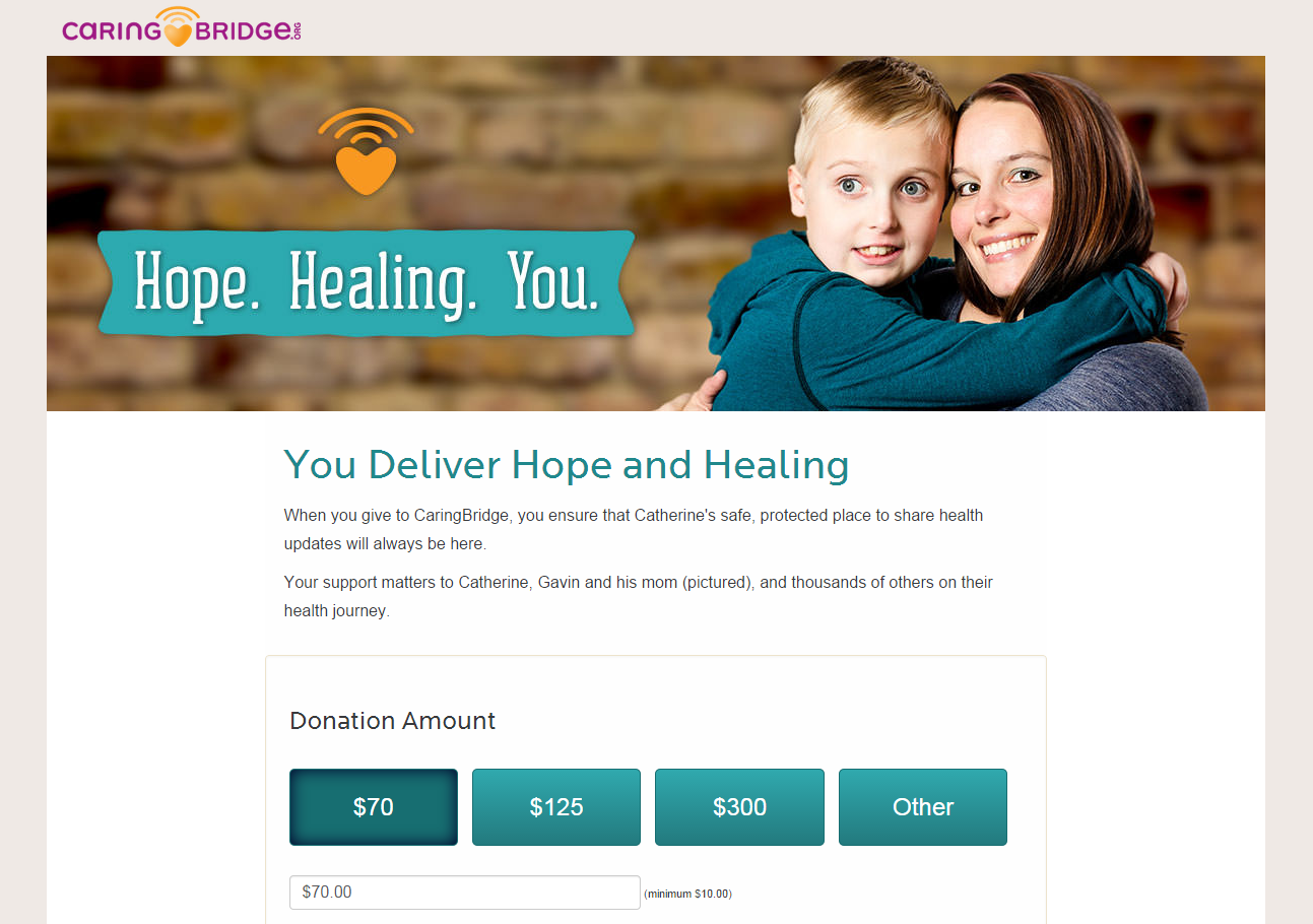 CaringBridge was launching a two-week fundraising campaign and wanted to run a test on the tribute donation pages for each Journal Site. Because traffic from tribute pages is generated from a specific person’s Journal, the CaringBridge team wanted to test the impact of making an ask just for that person versus an ask to support the entire CaringBridge community. The result would deliver valuable learnings for future fundraising campaigns and landing page tests.