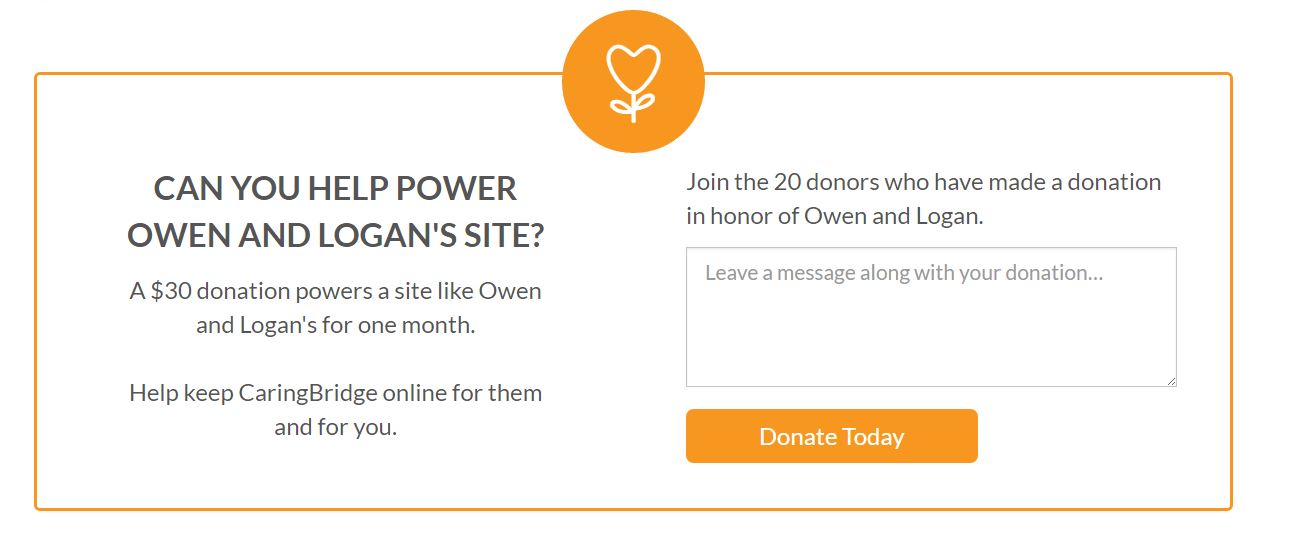 CaringBridge had done some message development around the value proposition of a donation. Donations to CaringBridge help power a platform that helps people stay connected. Their value proposition centered around this connection, as multiple tests had proven. However, they hypothesized that adding a more tangible offer for the donor into the ask might increase conversion. They calculated that it takes $30 to power a single CaringBridge site for a month, and developed a treatment of their tribute widget (which appears on the most highly-trafficked sections of their site) that called this out.