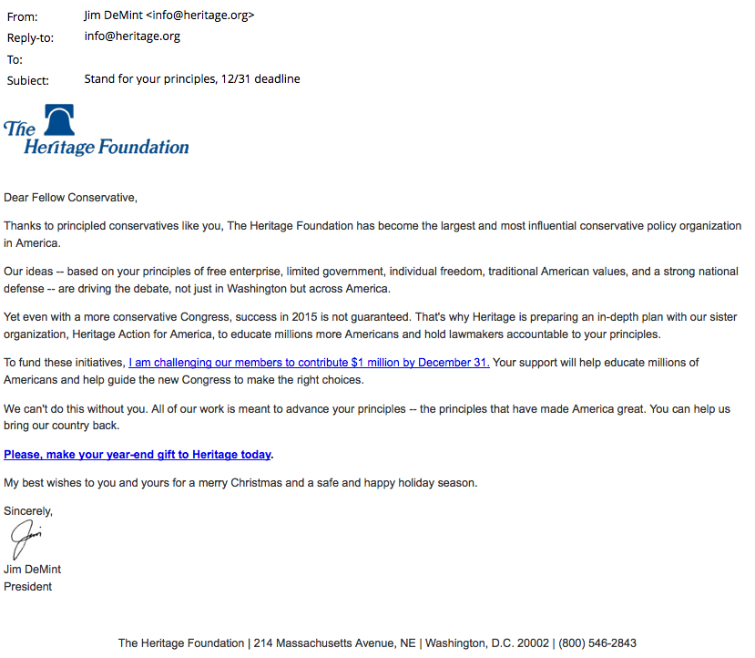 An email talking about how Heritage impacts the constituents’ family life will drive more clicks than one talking about how they stand for the constituents’ principles.