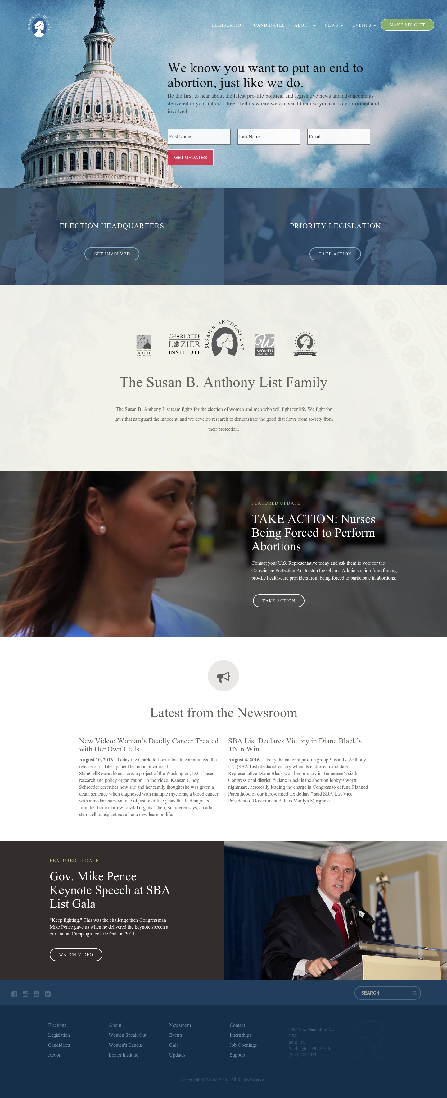 For Susan B. Anthony List, we wanted to see if the existing value proposition around the home page email acquisition form was the most appealing to its audience. From previous experiments with the email file, we had found that the more casual tone was more appealing to their audience and they also like specificity. They wanted more details about the offer before they would take action. We decided to craft a value proposition statement that emphasize these two traits and test it against the existing value proposition.
